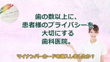 ニュース 歯科医療とマイナンバーカード 「歯の数以上に、患者様のプライバシーを大切にする歯科医院。マイナンバーカードを導入しましたか?」マイナンバーカードには、多数の利点がございます。まず、初回来院の際には、マイナンバーカードによる本人確認... ニュース